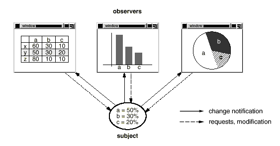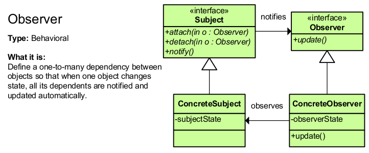 - Observer: often provides a public method for modifying an object
