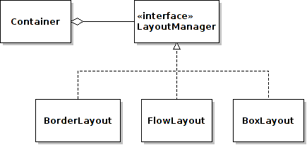ConcreteStrategy: BorderLayout, FlowLayot, BoxLayout, …