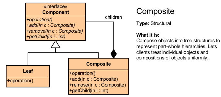 Composite: defines behavior for components having children.