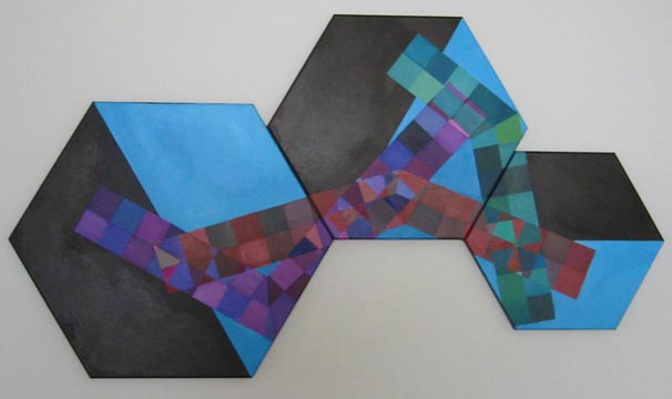 Triptychon I Three Hexagonal Canvases 12", 10", and 8" sides |