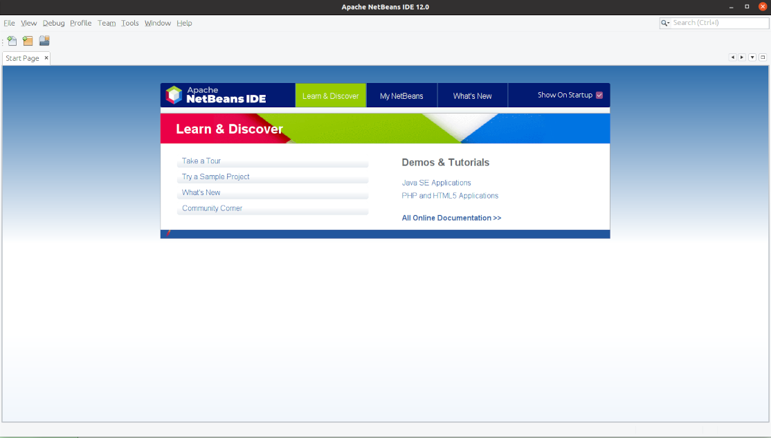 First, start NetBeans on your machine. Upon launch, the IDE will